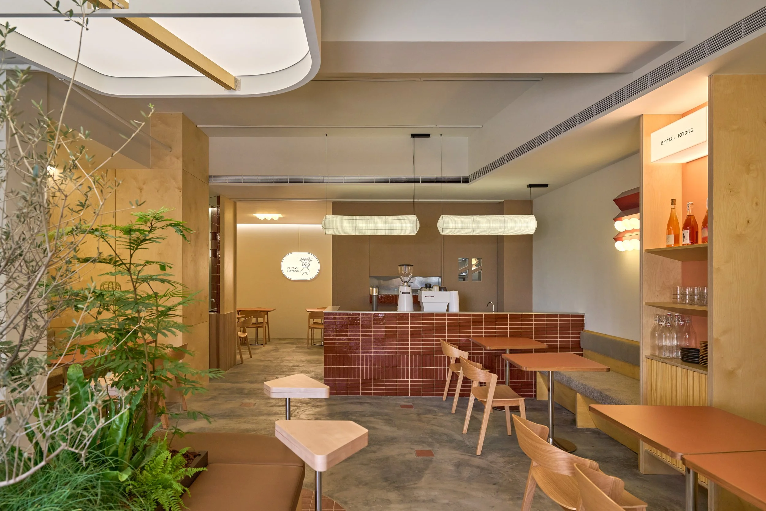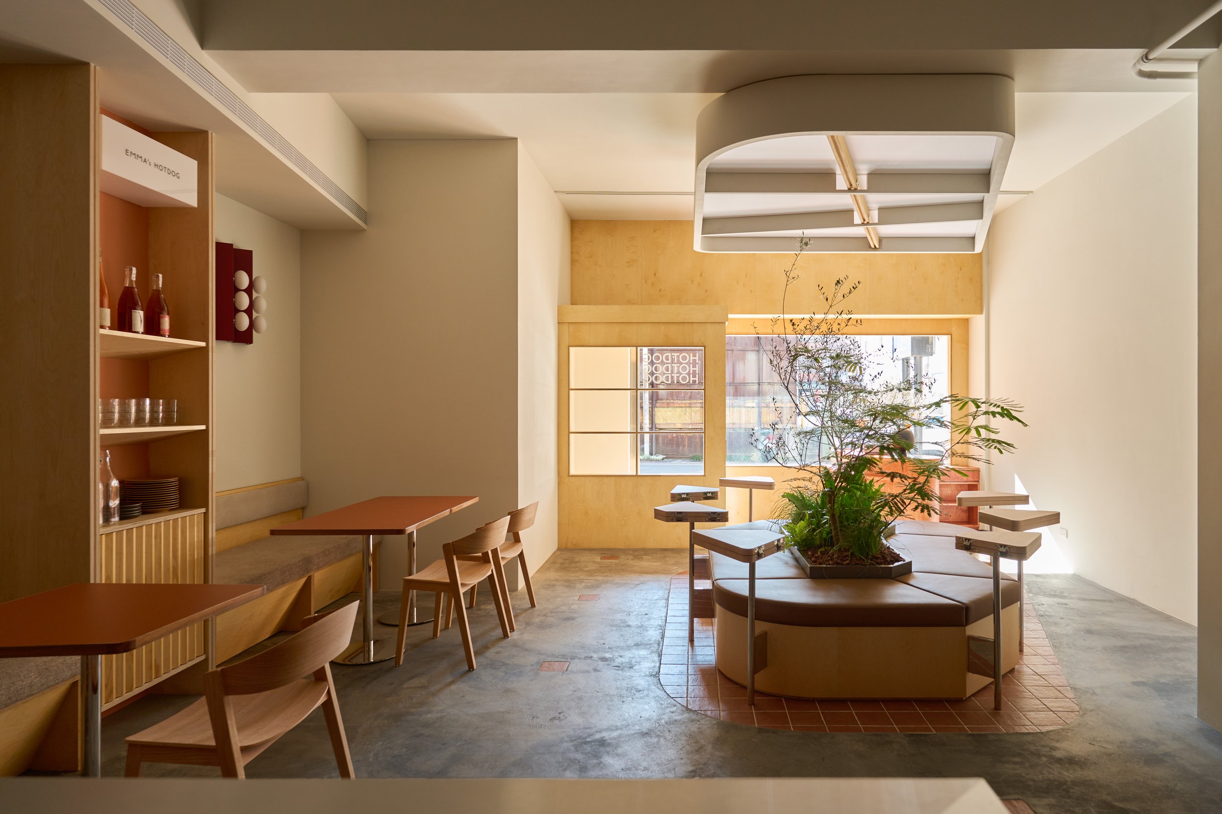 In the city, a forest can still exist. Inspired by the spirit of harmony with nature at Emma's Hotdog’s original store in Japan, the design reinterprets the idea of an urban oasis within the context of Taiwan.
