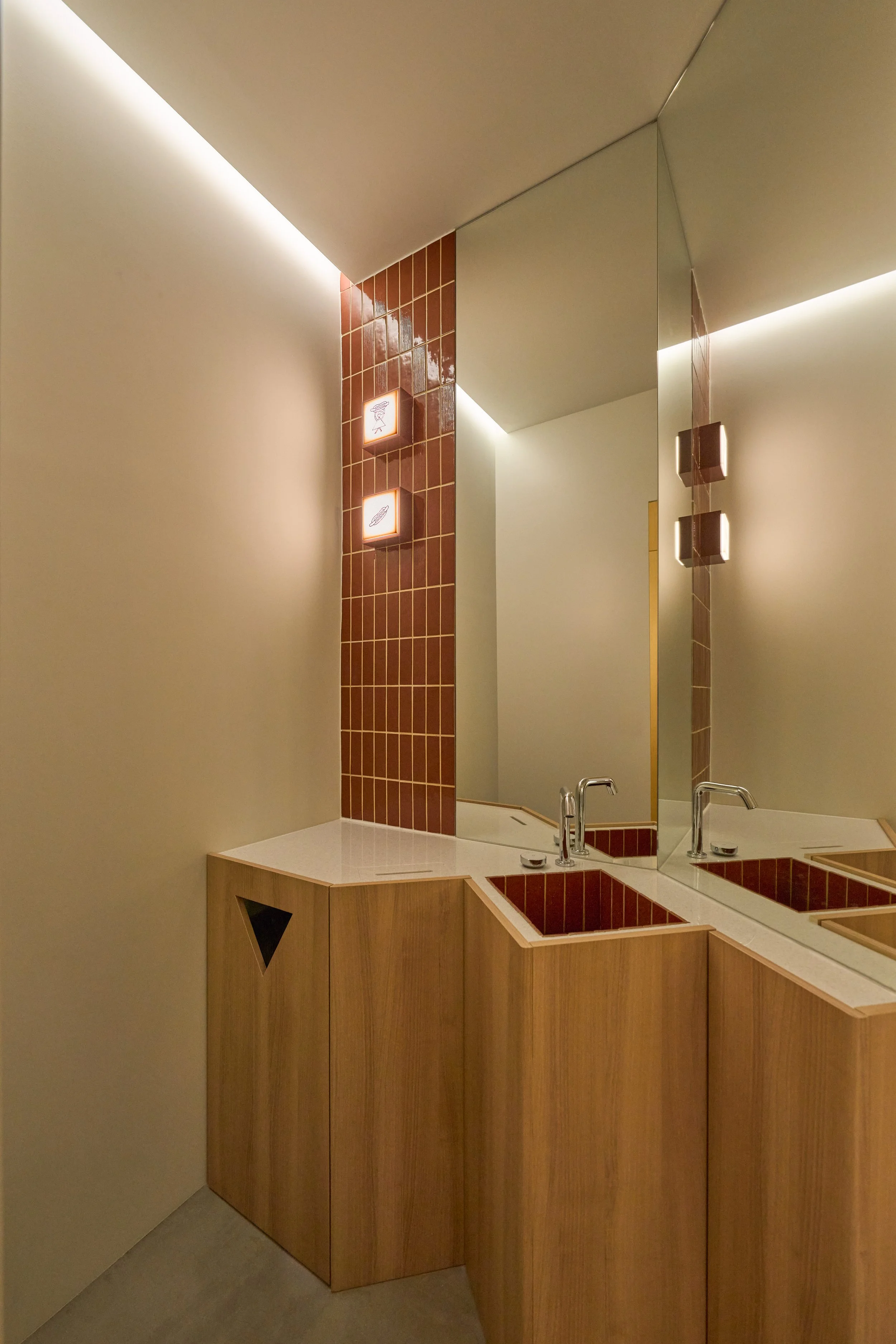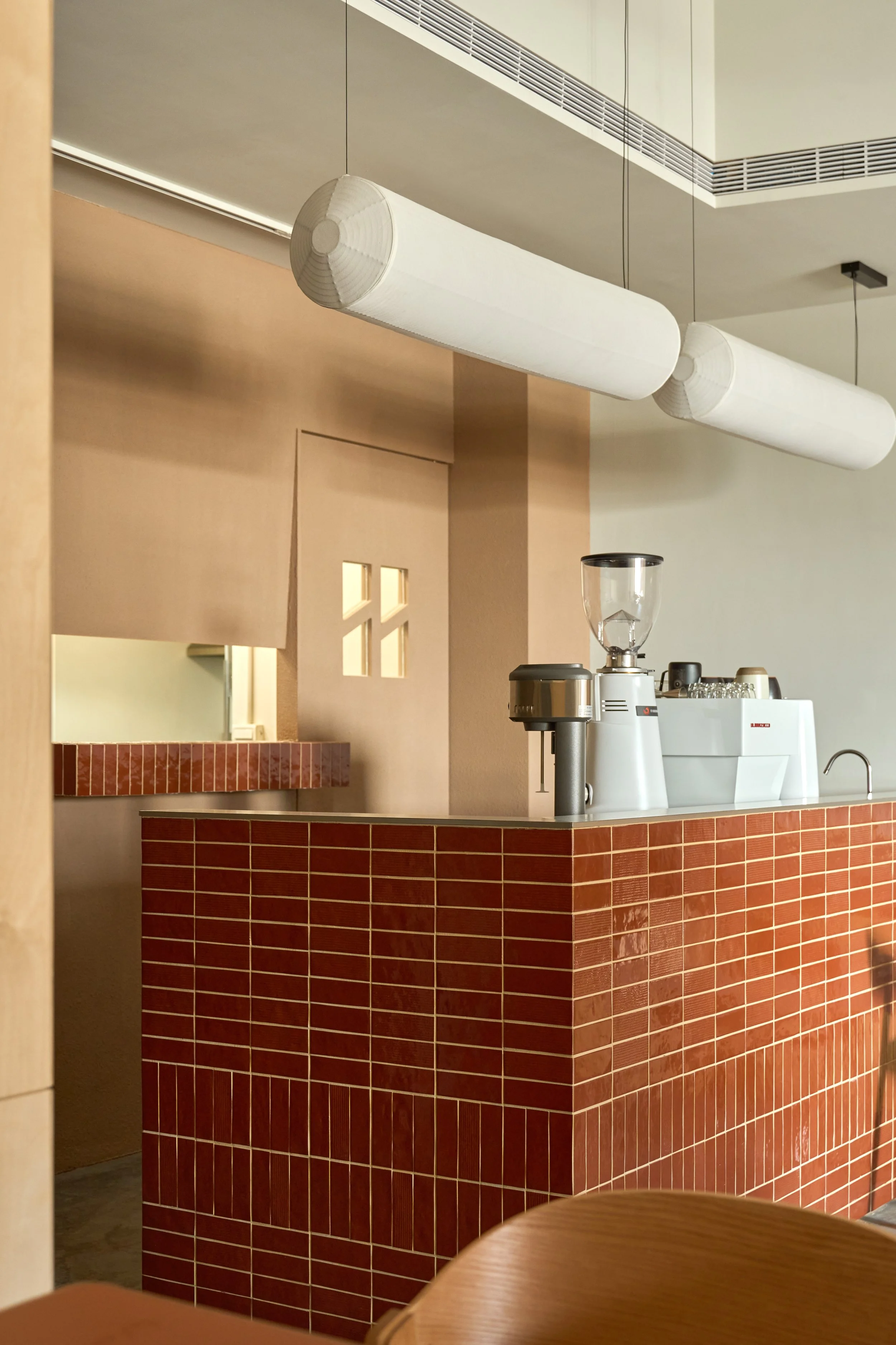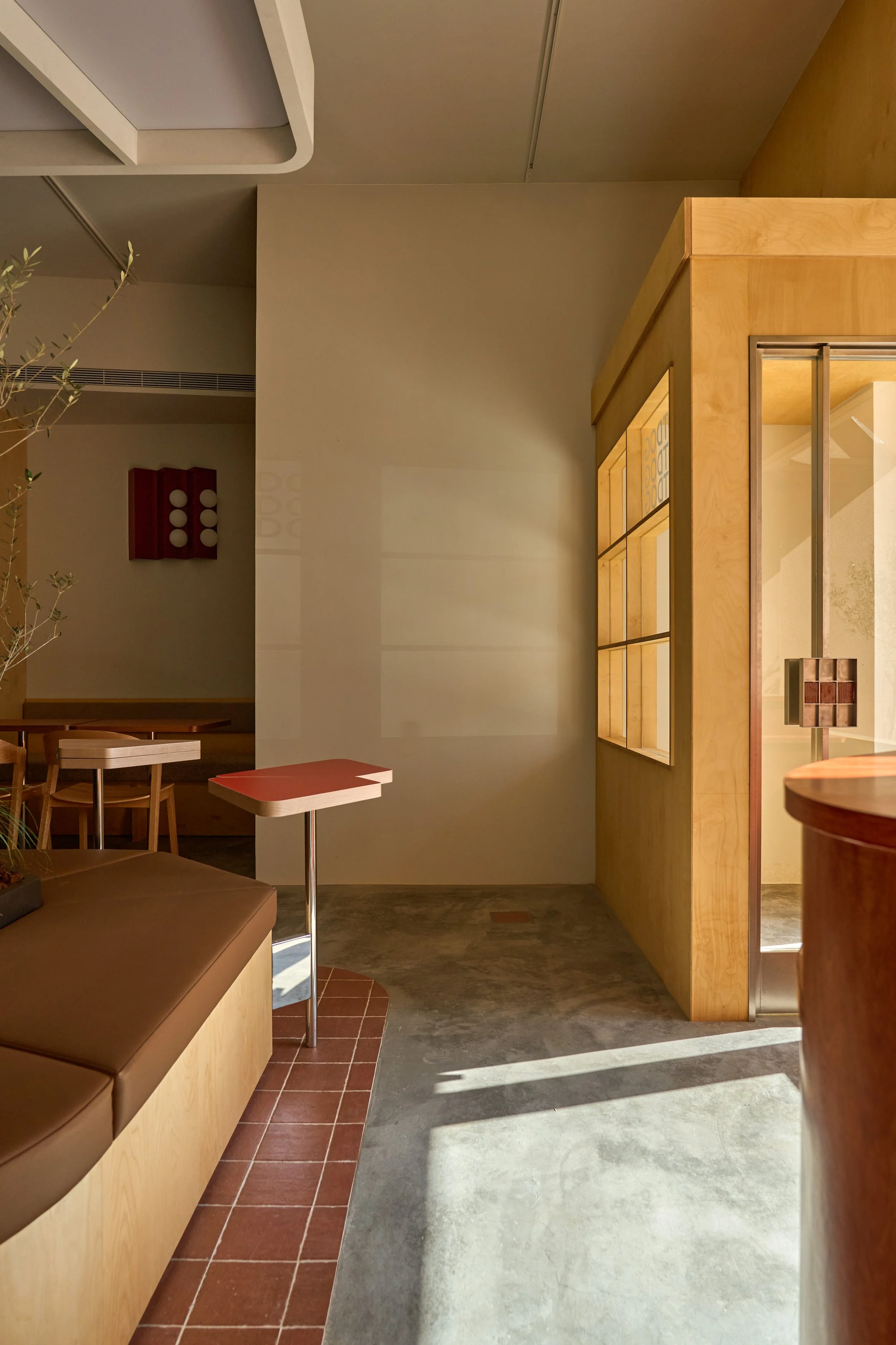 The entrance wall introduces the space with earthy tones and natural materials, evoking the primal imagery of soil and trees. From the moment visitors step inside, the pace of the city begins to fade. As the spatial sequence unfolds, greenery and a skylight-inspired luminous ceiling create layered light and shadow reminiscent of sunlight filtering through a forest canopy. Through the interplay of light, greenery, and circulation, the interior gradually transitions from city to forest—forming a quiet refuge within the urban bustle, a place that invites visitors to slow down and linger.