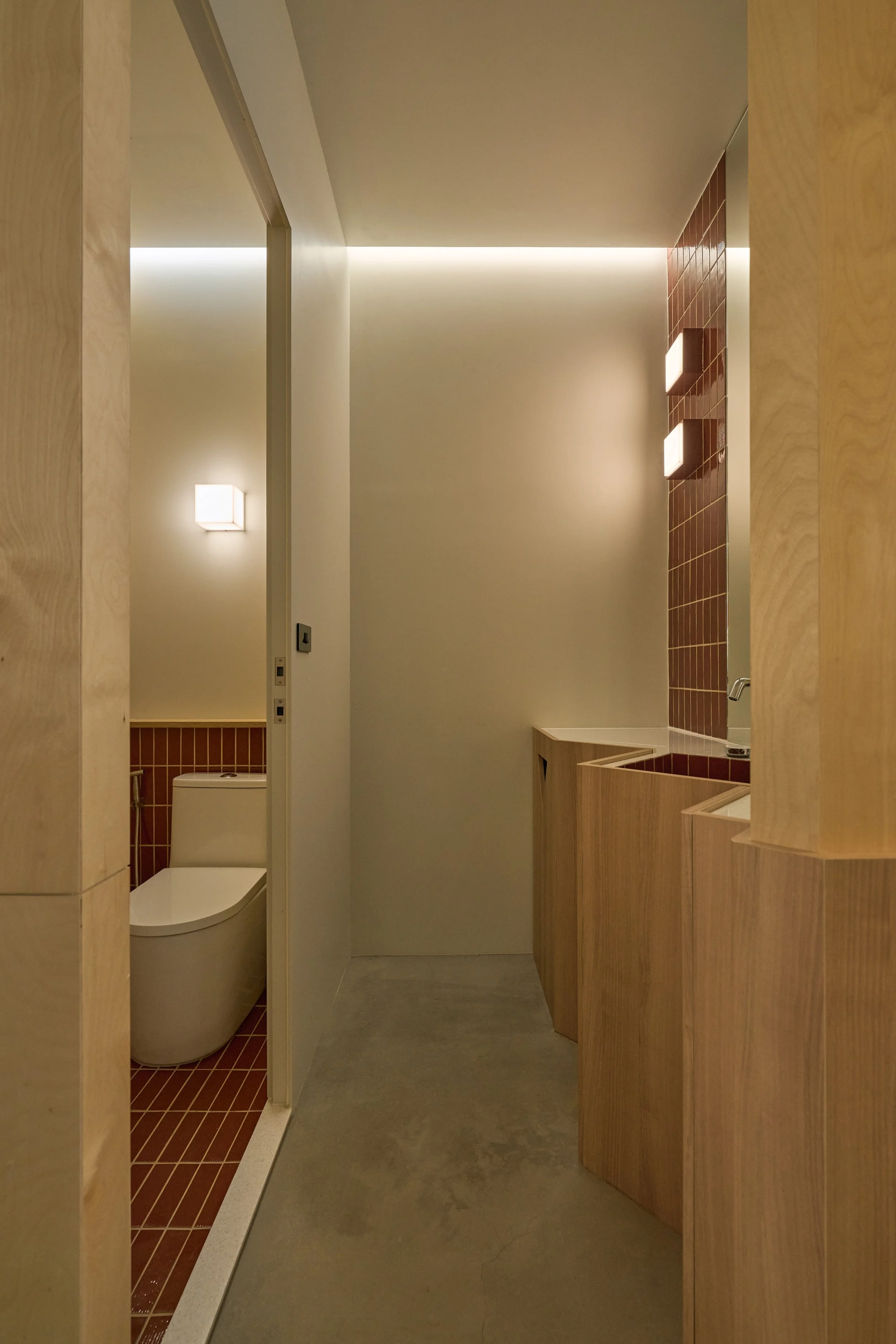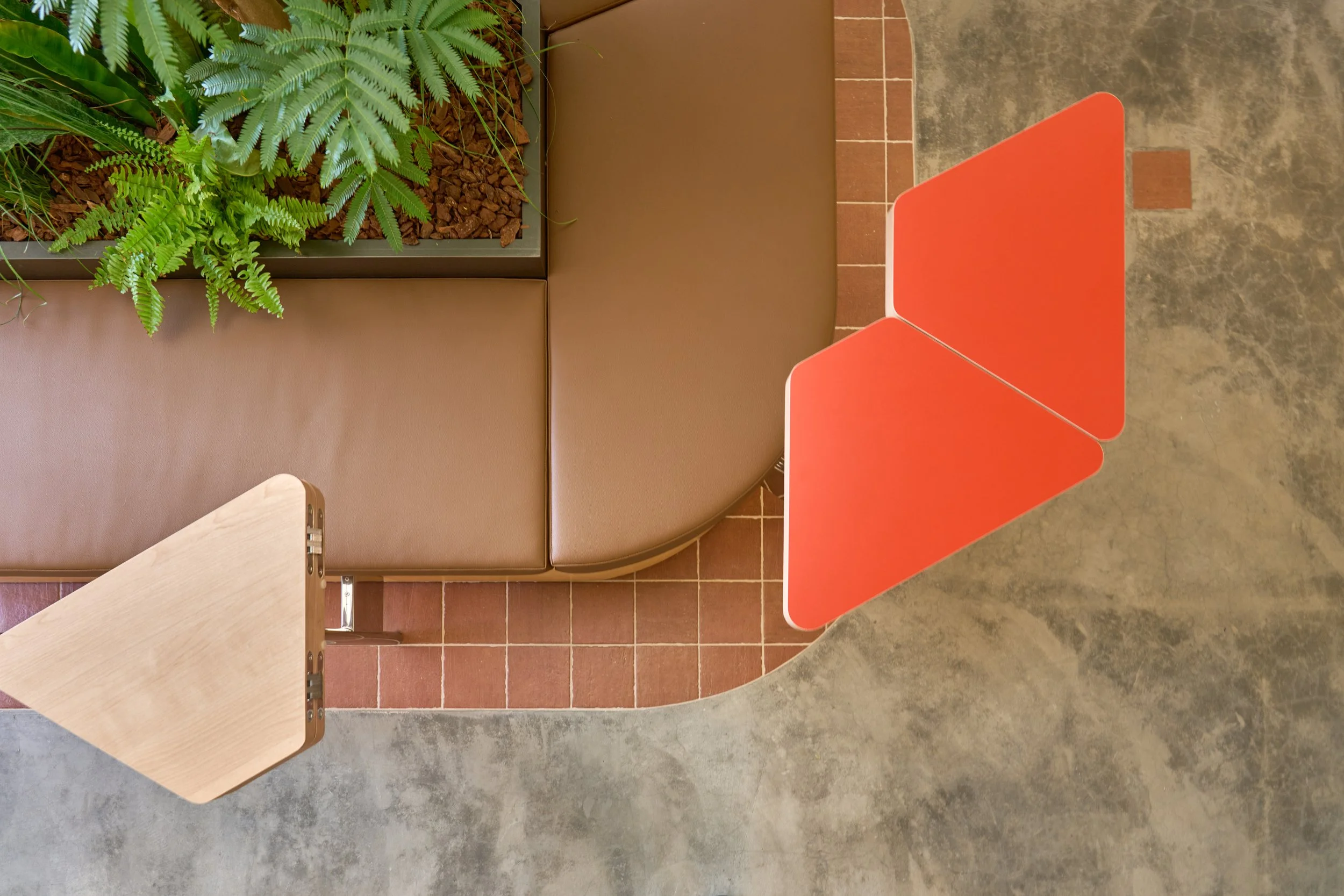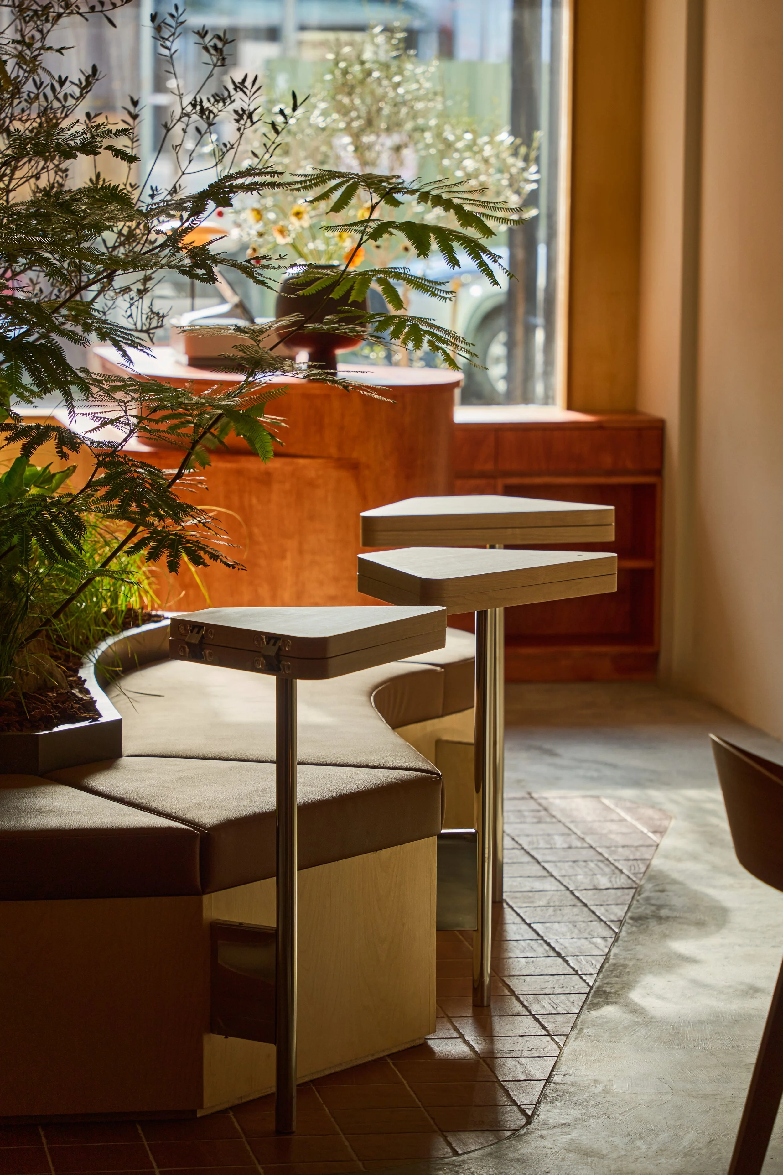 The entrance wall introduces the space with earthy tones and natural materials, evoking the primal imagery of soil and trees. From the moment visitors step inside, the pace of the city begins to fade. As the spatial sequence unfolds, greenery and a skylight-inspired luminous ceiling create layered light and shadow reminiscent of sunlight filtering through a forest canopy. Through the interplay of light, greenery, and circulation, the interior gradually transitions from city to forest—forming a quiet refuge within the urban bustle, a place that invites visitors to slow down and linger.